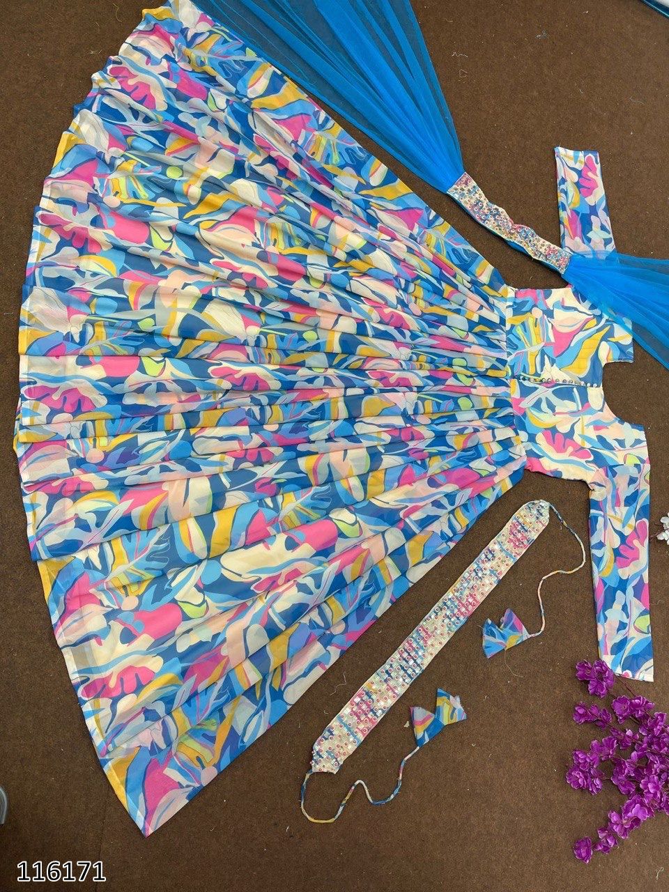 Step into elegance with this faux georgette printed gown with dupatta, crafted for women who love premium designer fashion. Featuring digital print with sequins and revat moti work belt, this outfit is the perfect blend of tradition and modern charm. With its 3-meter flair and stylish finish, this gown ensures a graceful look for every festive and party occasion.