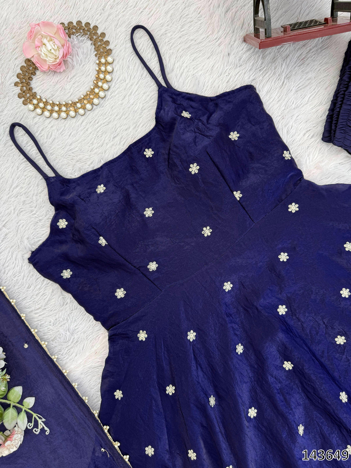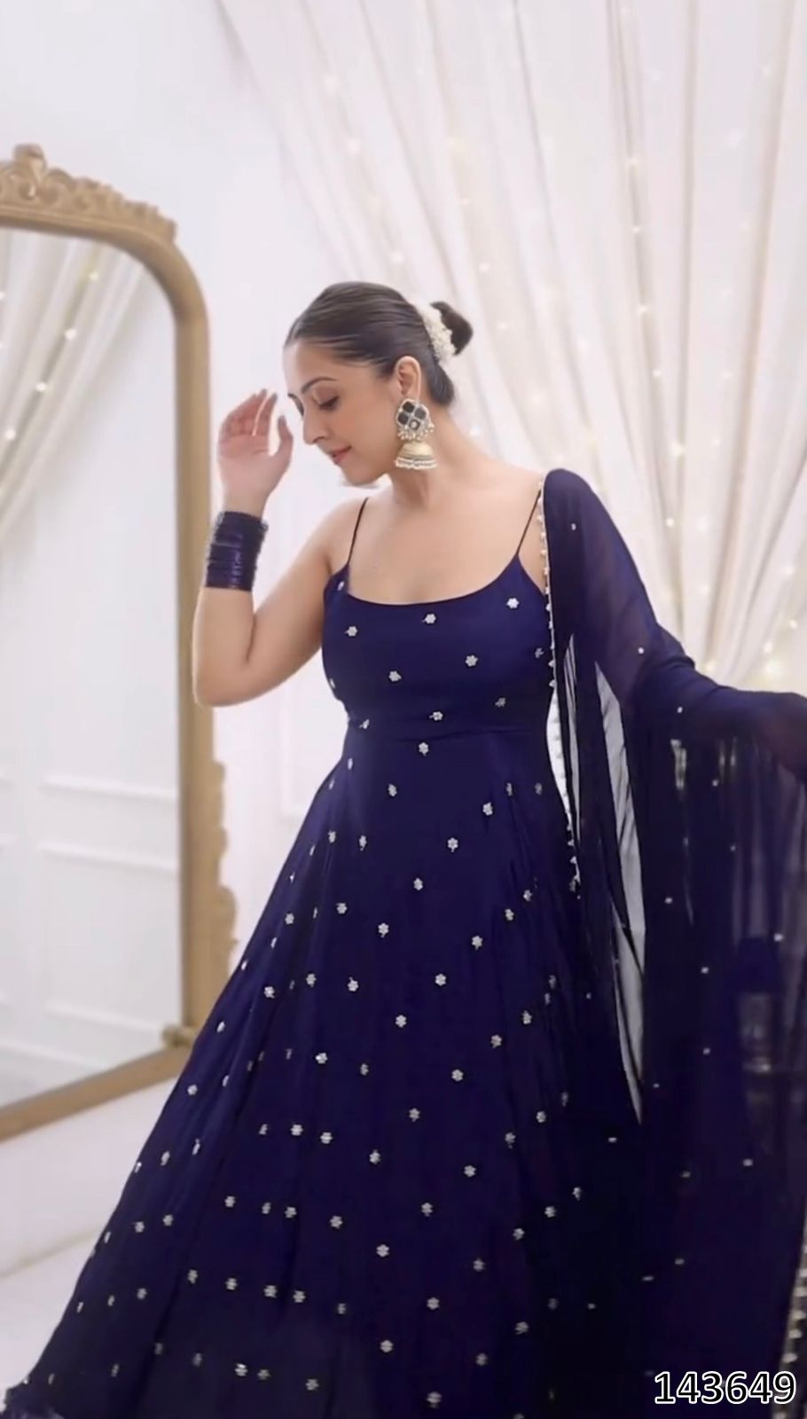 Step into effortless charm and elegance with this beautifully designed 3-piece suit set, crafted in rich Fendy silk and detailed with thread & sequence work. A graceful silhouette with a generous flair, perfect for everyday elegance and special occasions.