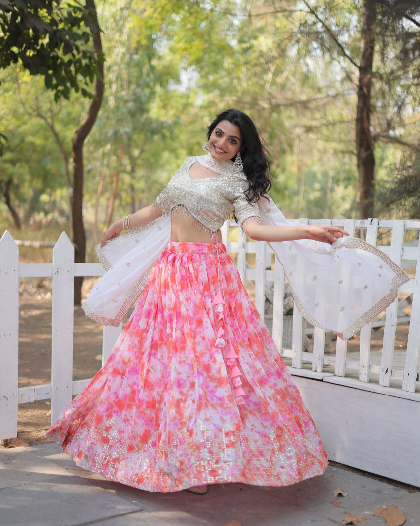 🤳 Introducing our Exquisite Collection of Digital Printed Georgette Lehengas, Each Lehenga is A Masterpiece, Crafted to Perfection and Adorned With delicate tassels Lw..👗