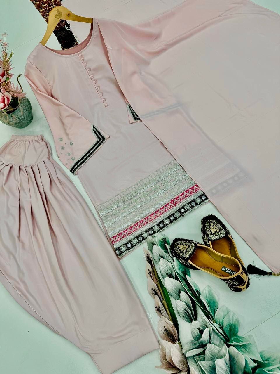 Designer Heavy Natural Crepe Top–Pant–Dupatta Set | Embroidered Sequins Work | Party & Casual Wear