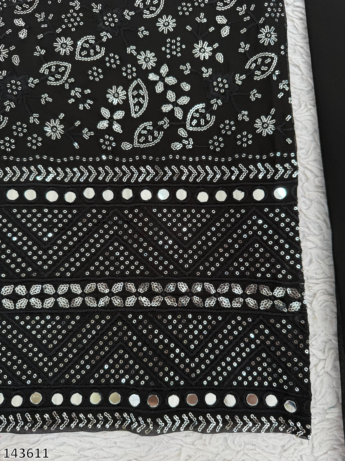 - Work: Sequin & real mirror embroidery with 4-side border detailing
