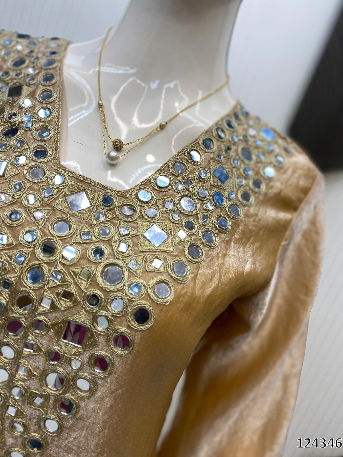 - Work: Embroidery with Mirror Work + Coin Lace Border