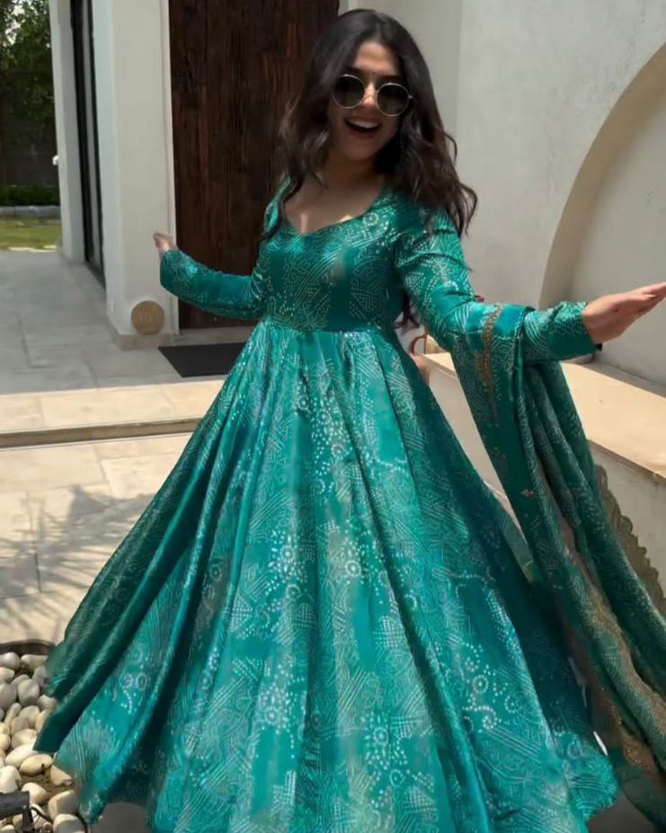 This gown set is simply beautiful, The Banarasi silk fabric is soft and luxurious, and the two-tone effect is mesmerizing. The dupatta adds sophistication, making it ideal for parties or festive events. Stylish, elegant, and highly recommended.