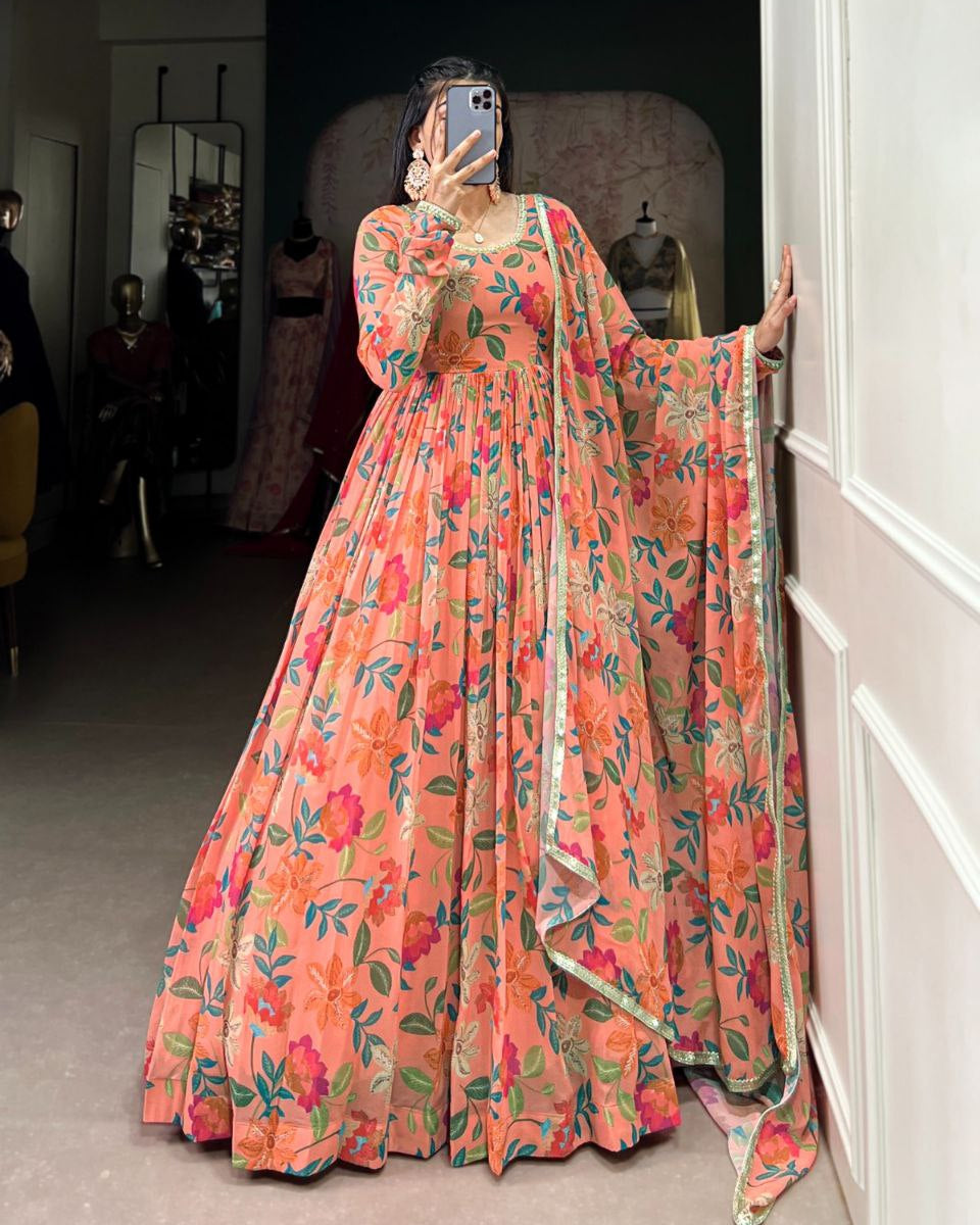 Elegant Floral Georgette Gown with Dupatta – Perfect for Every Occasion!