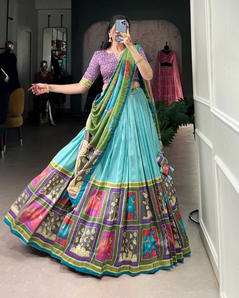 Party Wear Vaishnavi Tussar Silk Kalamkari Lehenga Choli Set with Gotta Patti Dupatta