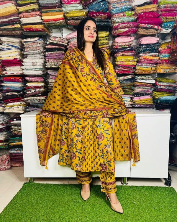 - Top Fabric: Premium Soft Cotton – Ikkat Printed