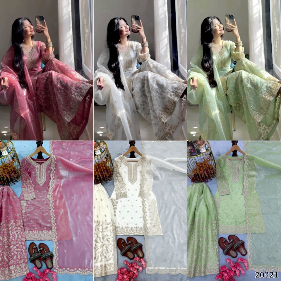 Step out in style with this Premium Designer Ready-to-Wear Top-Plazzo & Dupatta Set from the Jimmy Choo Collection, perfect for parties, festive occasions, and elegant gatherings. Crafted with heavy embroidery, sequins, and dori work with hand-applied moti detailing, this set offers a luxurious look with full comfort.