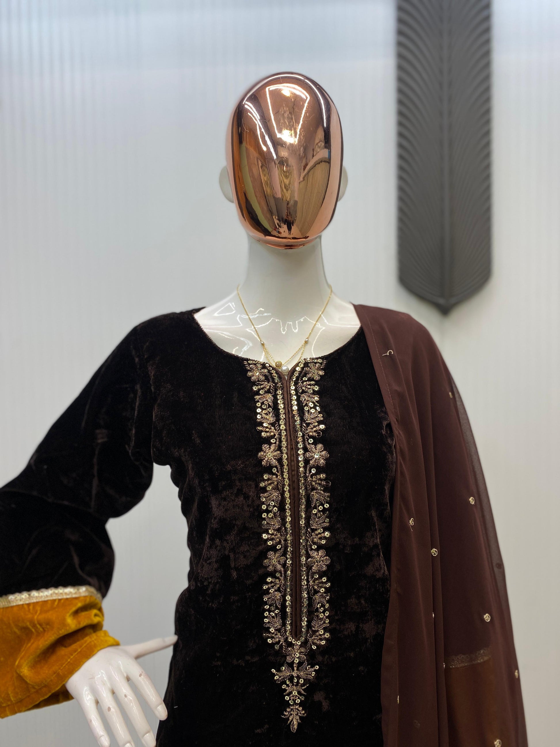 Step into the winter season with elegance and warmth in our 2025 Velvet Collection. This premium 3-piece palazzo set features luxurious fabrics and intricate sequence embroidery—perfect for festive occasions, gatherings, and winter celebrations.