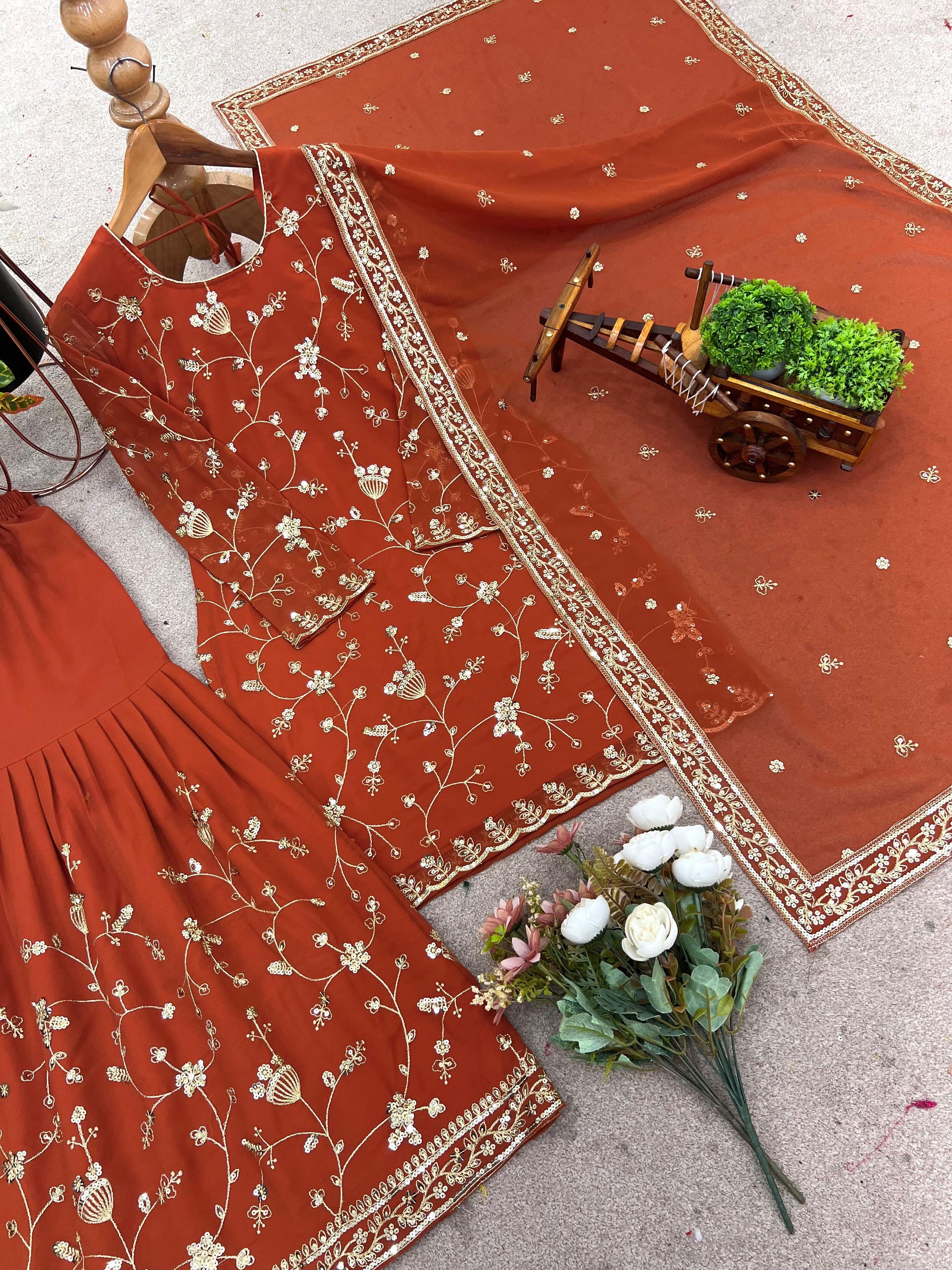Make every celebration unforgettable with this Designer Party Wear Plazzo Set, crafted in premium Faux Georgette and detailed with 5mm sequins embroidery for that rich festive glow. Comfortable, stylish, and fully stitched — this outfit is made for weddings, parties, receptions, festive gatherings, and special occasions.