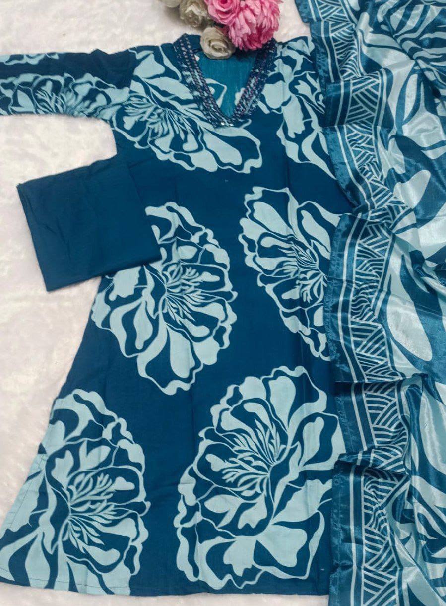 Elevate your ethnic wardrobe with our Exclusive Slub Cotton Collection, featuring a fully stitched Kurti‑Pant‑Dupatta Set designed with neck paper mirror embroidery work and all‑over printed detailing. Paired with a soft printed Chinnon dupatta, this ensemble blends comfort with elegance, making it ideal for festive occasions, office wear, and casual gatherings.