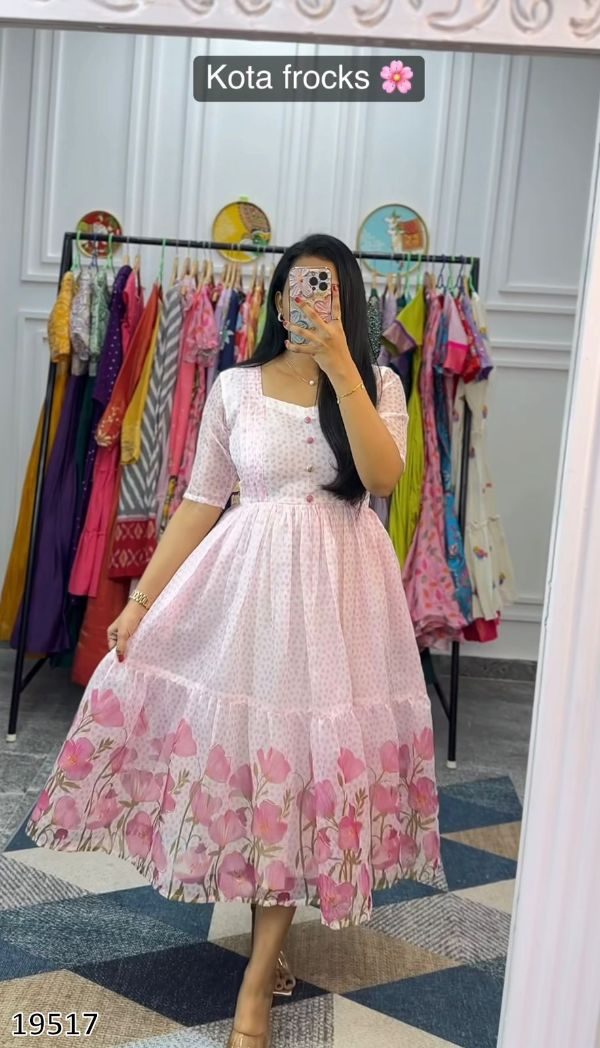 Elevate your everyday style with this lightweight and breathable Kota fabric frock, featuring a charming print and a handy one-side pocket. Perfect for casual outings, daily wear, or comfy office looks.