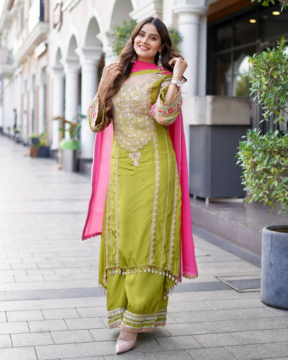 Super Hit Eid Collection – Elegant Vichitra Silk Ensemble with Mirror & Sequence Work