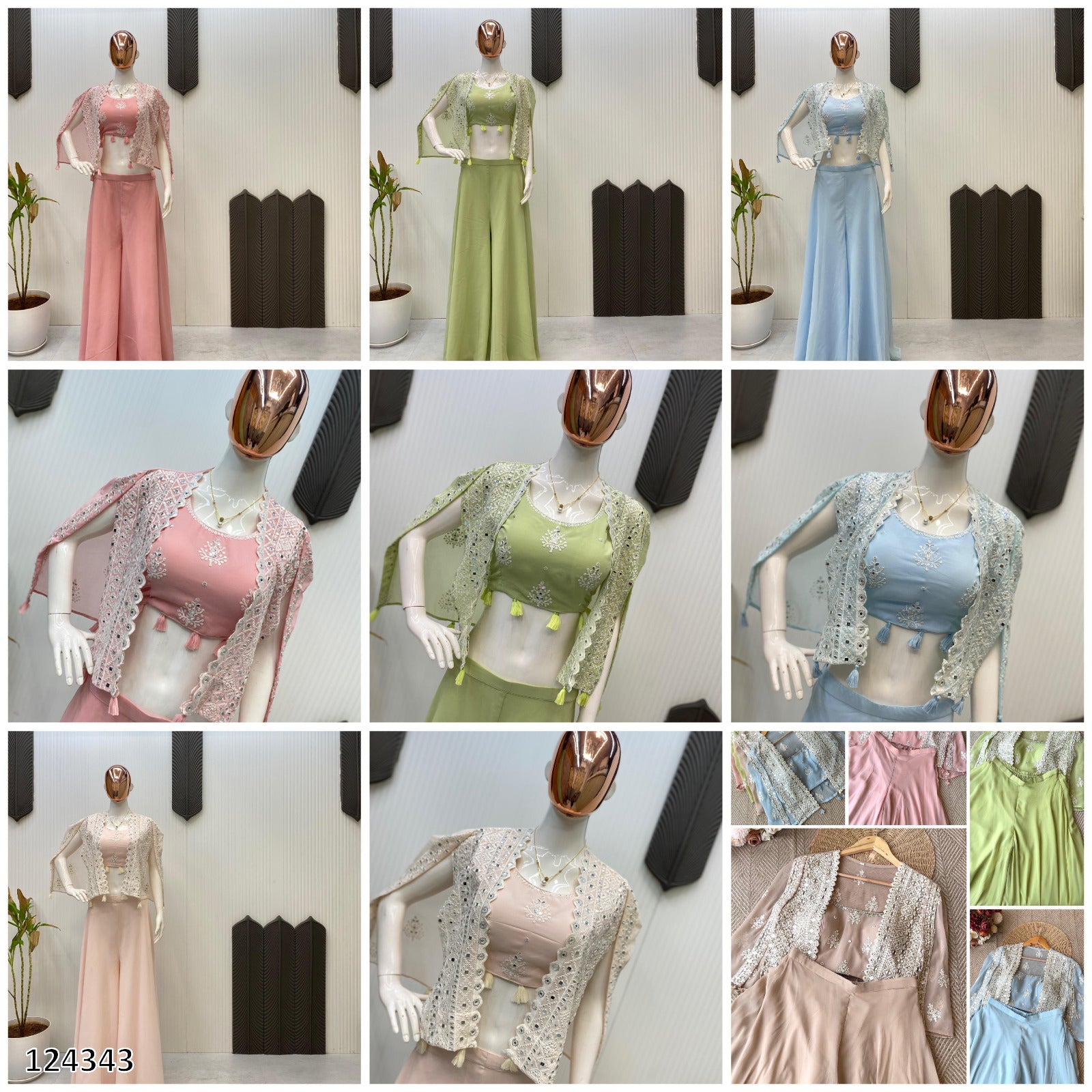 Trending Party Wear 3-Piece Set | Blouse, Palazzo & Shrug with Sequence Embroidery