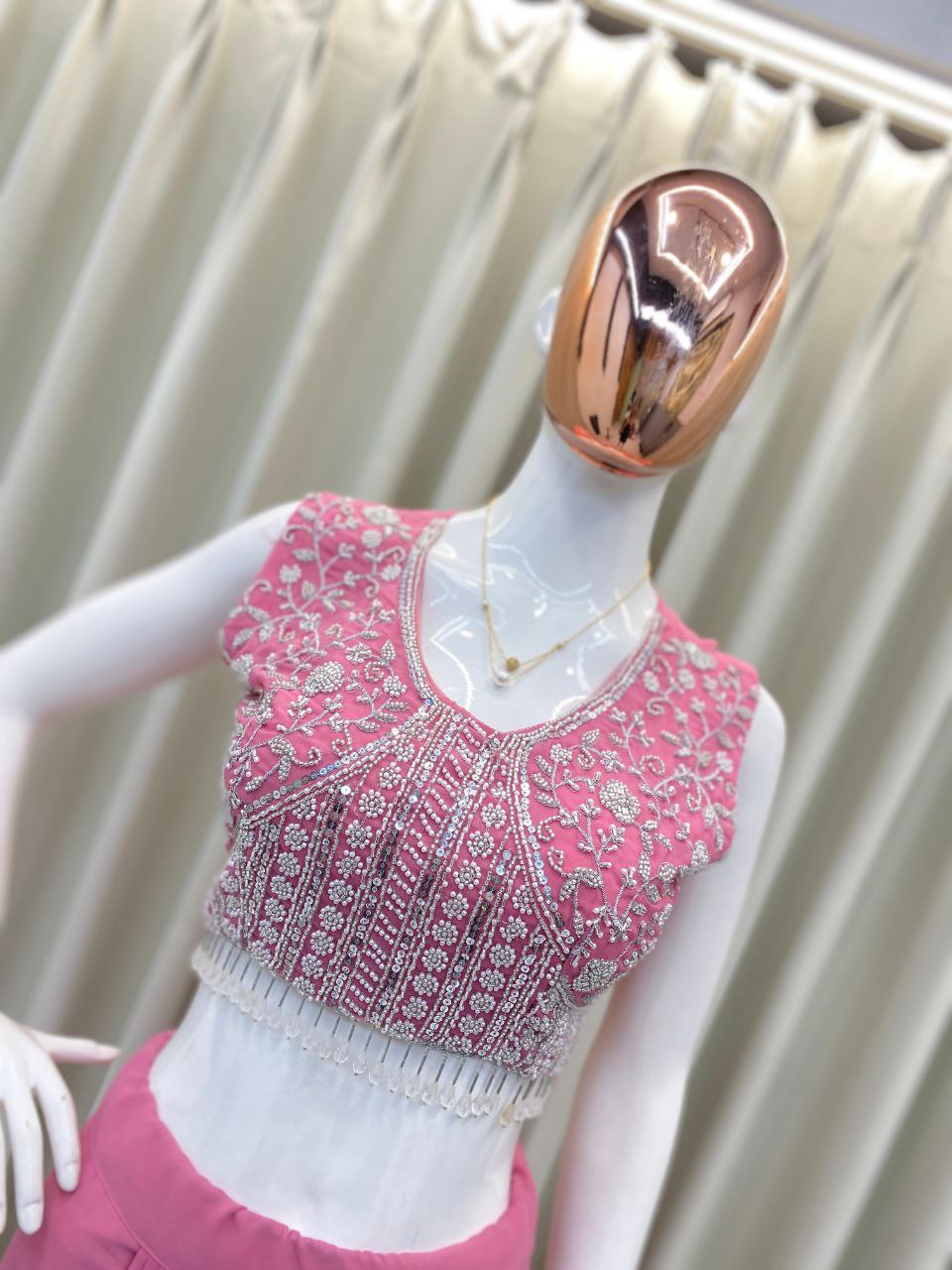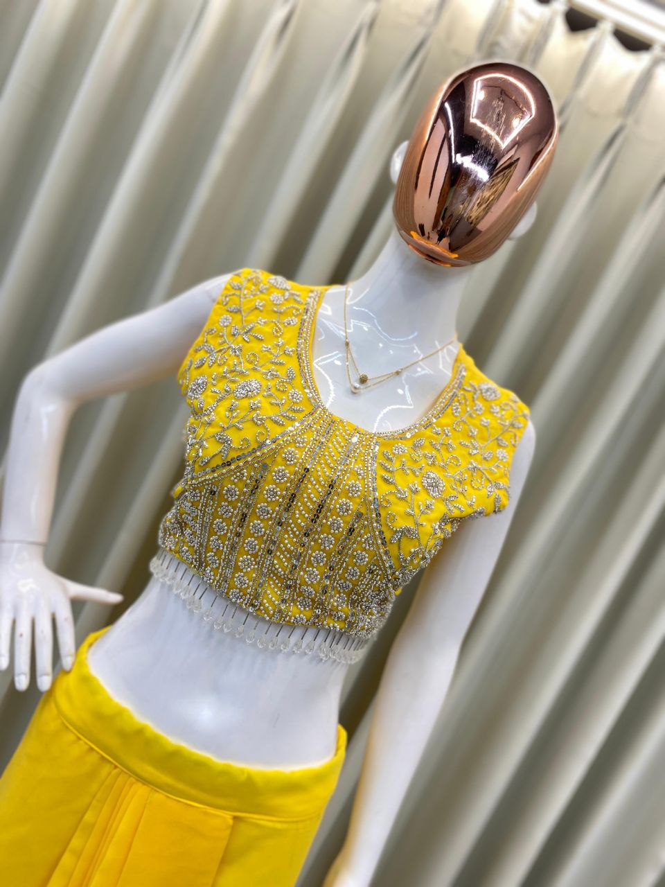 Unveil your style this wedding season with this premium western 3-piece outfit, perfect for trendy bridesmaids and fashion-forward women. Featuring exquisite hand embroidery, sequin, and beadwork, this designer ensemble blends modern flair with ethnic elegance. Ideal for receptions, cocktail nights, or festive occasions.