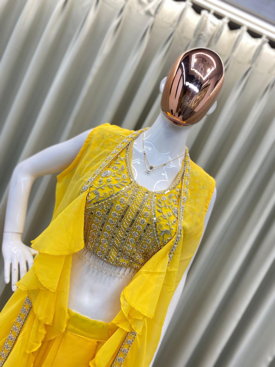 Western 3-Piece Georgette Outfit with Handwork & Embroidery – Party & Wedding Wear